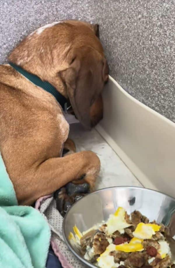 A megmentők azt is észrevették, hogy remegett, és még enni vagy inni sem volt hajlandó. Félt és szomorú volt.